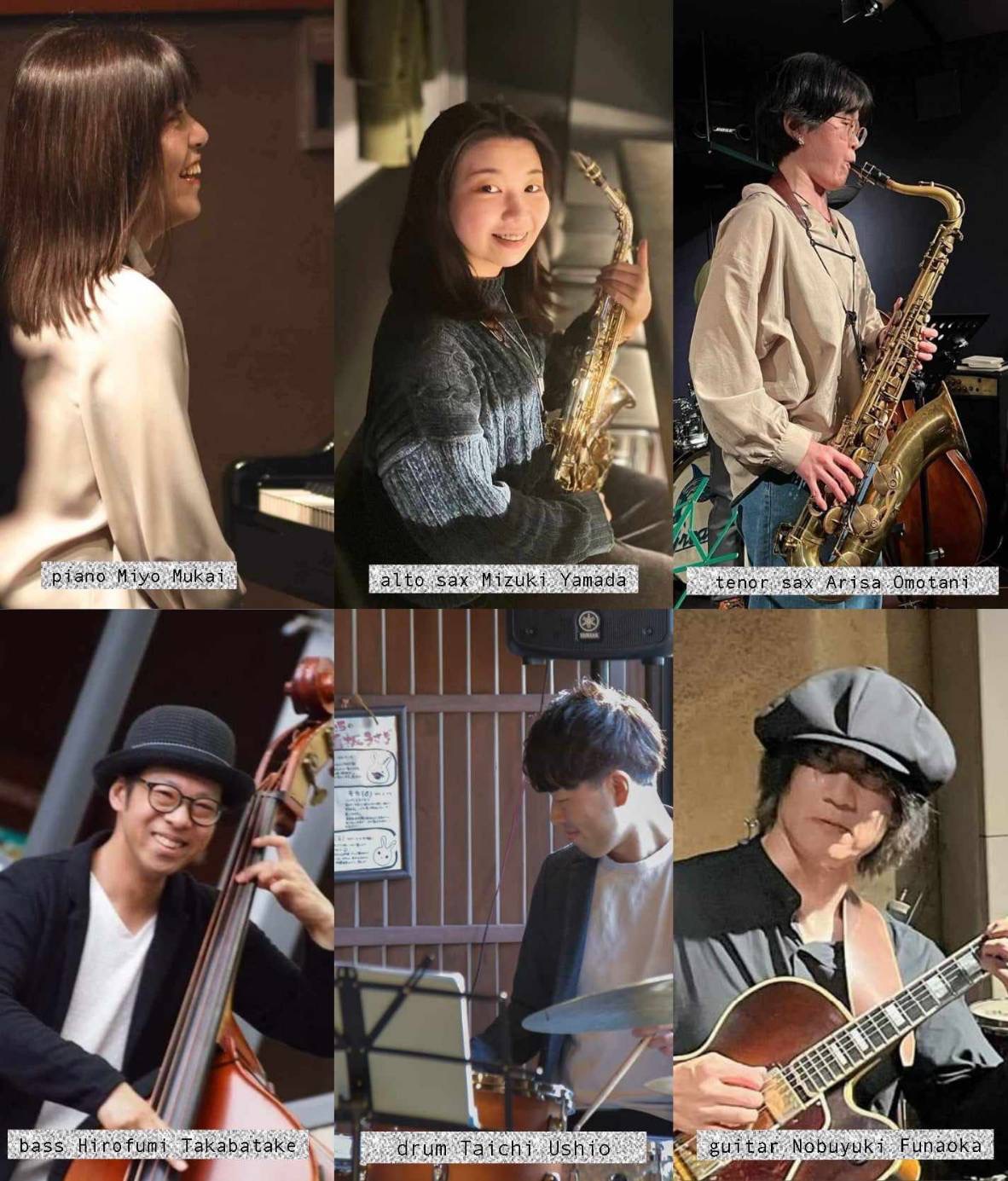 T.Sax 園恵太朗 Tp. 江口多聞 Gt. 福島陽平 Ba. 石井咲夏